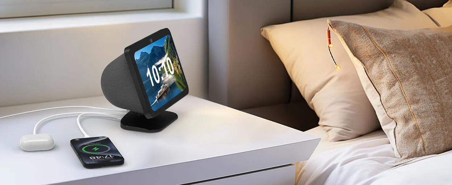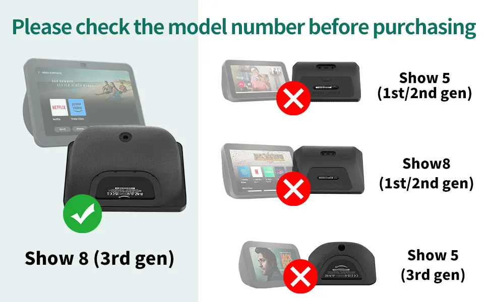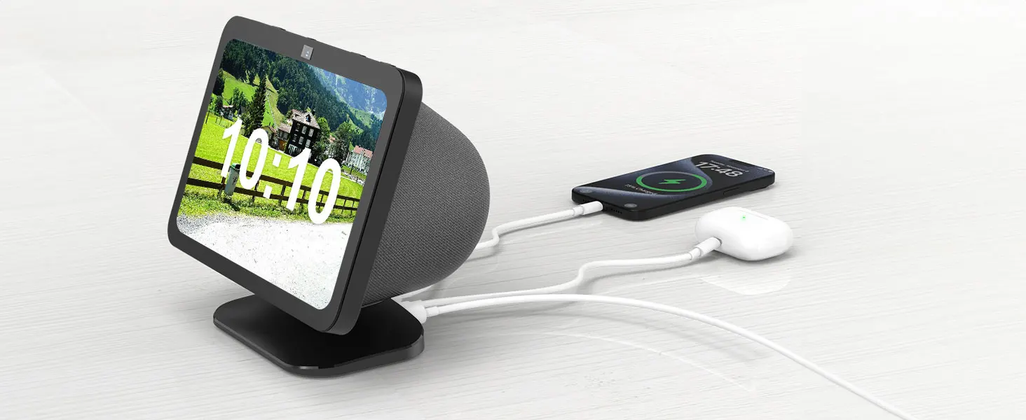 2. Compatibility: The adjustable stand is compatible with Show 8 (3rd Gen, 2023 release). It can also charge your smartphones, earbuds, smartwatch and more. Please use the Show 8 3rd Gen original adapter for input port. NOT for Show 8 (2nd Gen & 1st Gen)